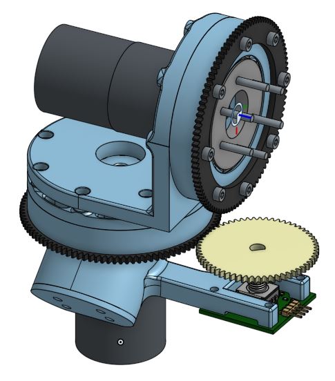 I also worked on creating the 2 degree of freedom shoulder joint. For this, one of my teammates made a custom slew bearing to use as one of the main parts. This allowed us to cut down drastically on the overall cost of the project and it worked surprisingly well. The bottom of the shoulder mounted to the torso in a way that angled the bottom motor into hole in the torso for it to sit. From there we just designed the two different sections of the shoulder to attach to the two different portions of the slew bearing. The gears were added later to allow the encoders to be able to read any rotation.