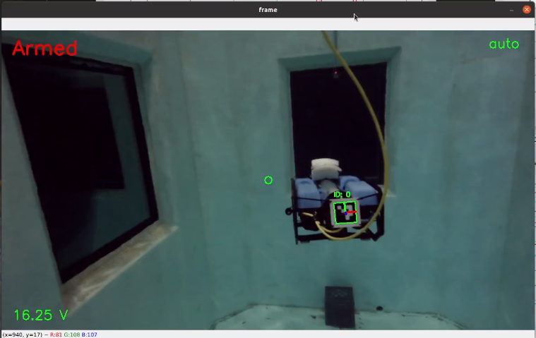 Through a lot of trial-and-error, we were able to make a custom interface that allowed both manual control of the ROV as well as the autonomous following of a fiducial marker (specifically, we used AruCo markers). This new interface specifically used ROS to communicate with and control the ROV.